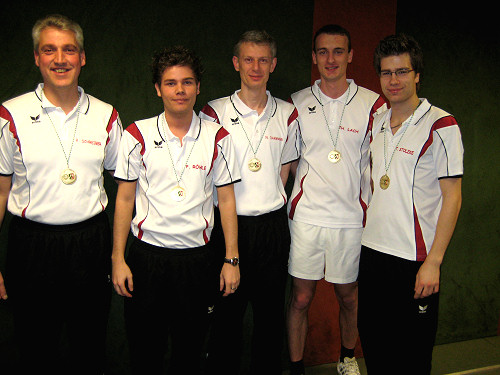 Von links, Ersatzspieler Volker Schreiber, Patrick Röhle, Niels Dammann, Thomas Lach,